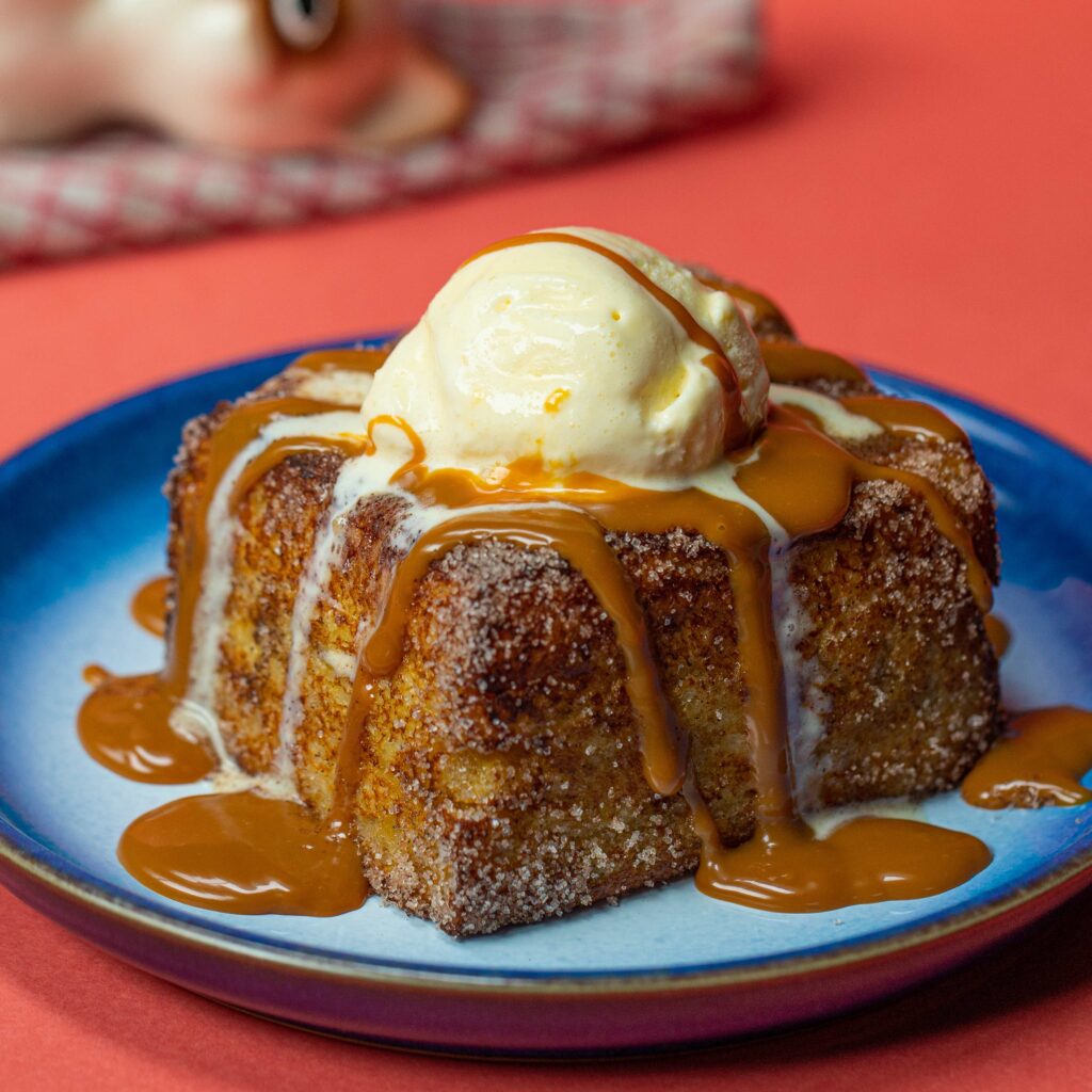 Hong Kong! Never been, always wanted to. This recipe is a hybrid mash up of this old colonial classic and apple pie. And it's served with ice cream and caramel. It's big, bouncy and a whole lot of fun, and it might just become your next go to French toast recipe.